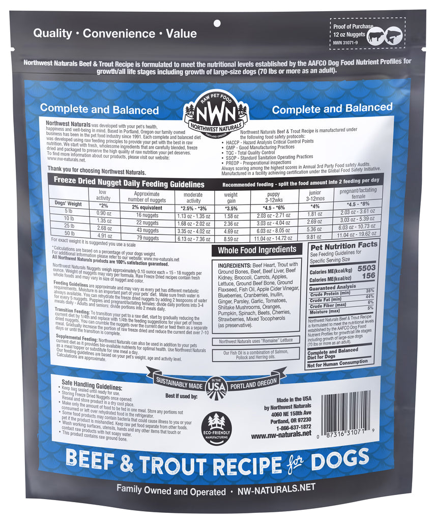 Northwest Naturals Freeze Dried Beef & Trout Recipe for Dogs