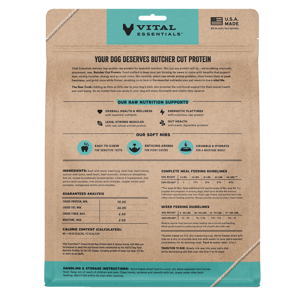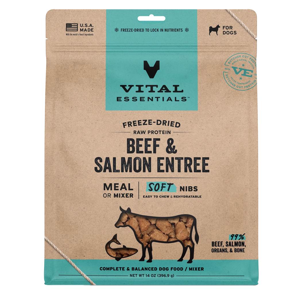 Vital Essentials Freeze-Dried Raw ProteinBeef & SalmonSoft Nibs Meal or Mixer Dog Food