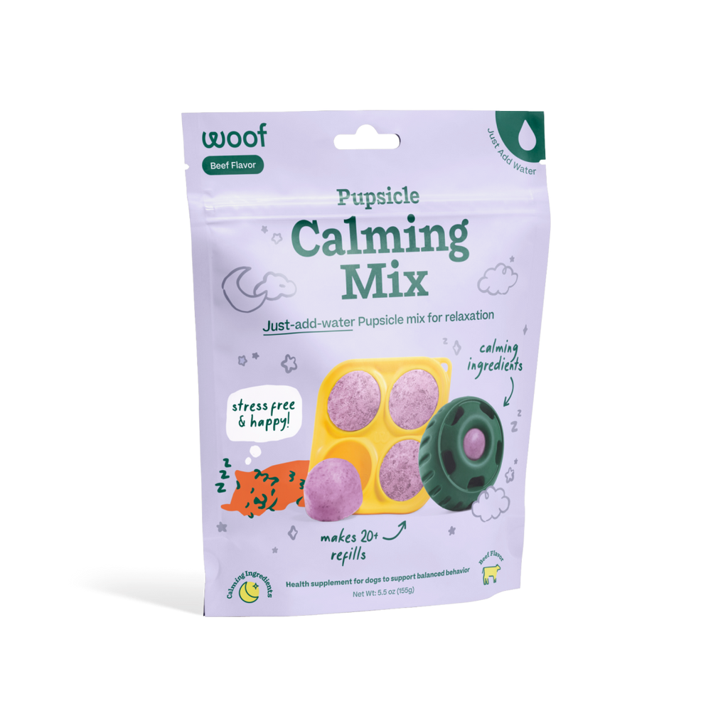 Dogs get stressed out, too! Whether it’s a delivery, thunderstorms, or car rides, they could use a little extra support. Calming Pupsicle Mix, crafted to support stress relief and relaxation, features ingredients including L-Tryptophan, L-Theanine, and GABA to promote mood balance, calmness, and better sleep. Chamomile adds natural soothing properties, while blueberry and purple sweet potato add antioxidant power. With a comforting aroma inspired by peaceful evenings, just mix it up to give your pup a relaxing pop. Each bag makes 20+ refills so you can offer your pup delicious pops on repeat.